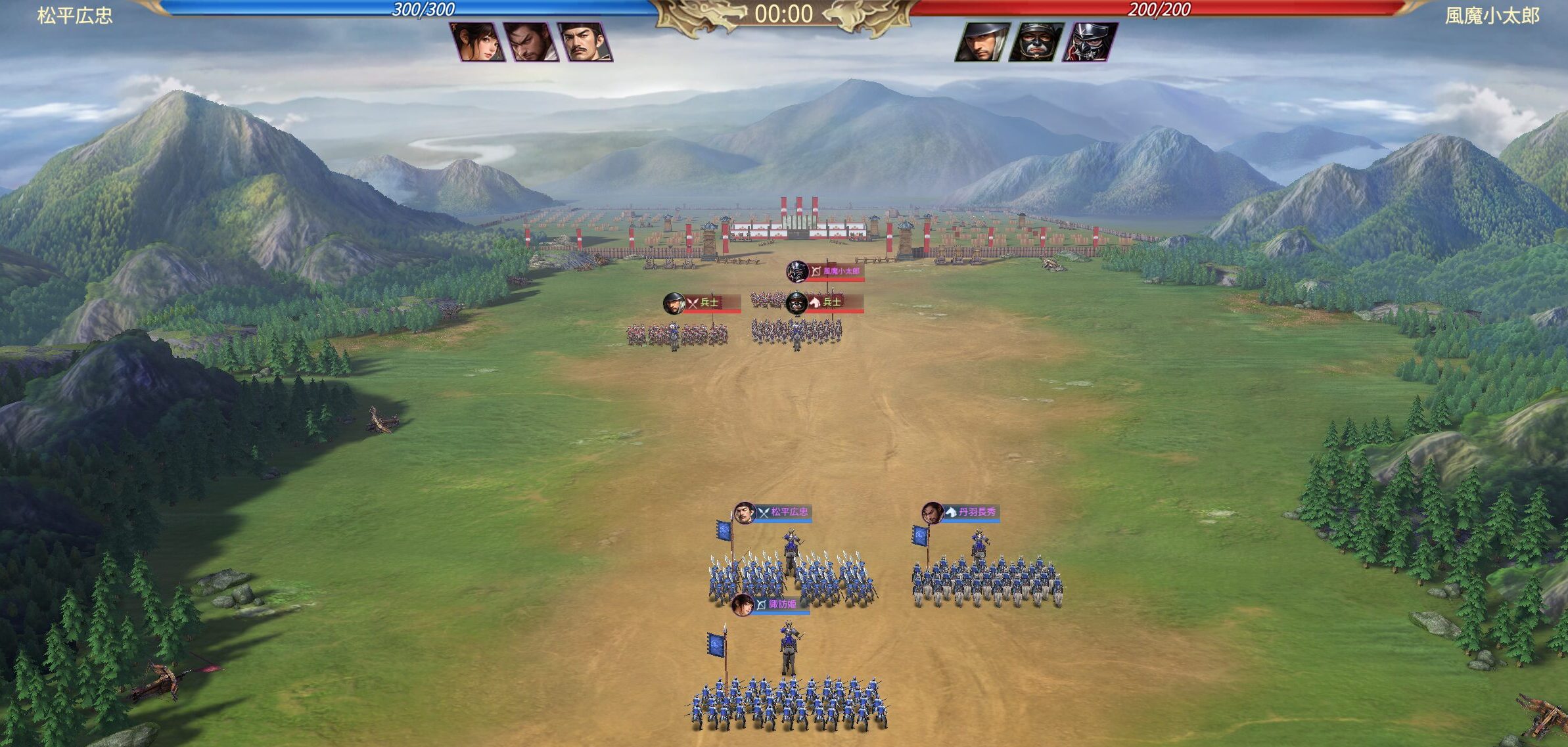 このゲームの醍醐味は、戦略性の高い編成です! 9マスの戦場に配置する武将、相性の良い「槍兵」「騎兵」「弓兵」の兵種、そして攻城兵器を組み合わせて、敵の編成に合わせた最強の部隊を作りましょう!